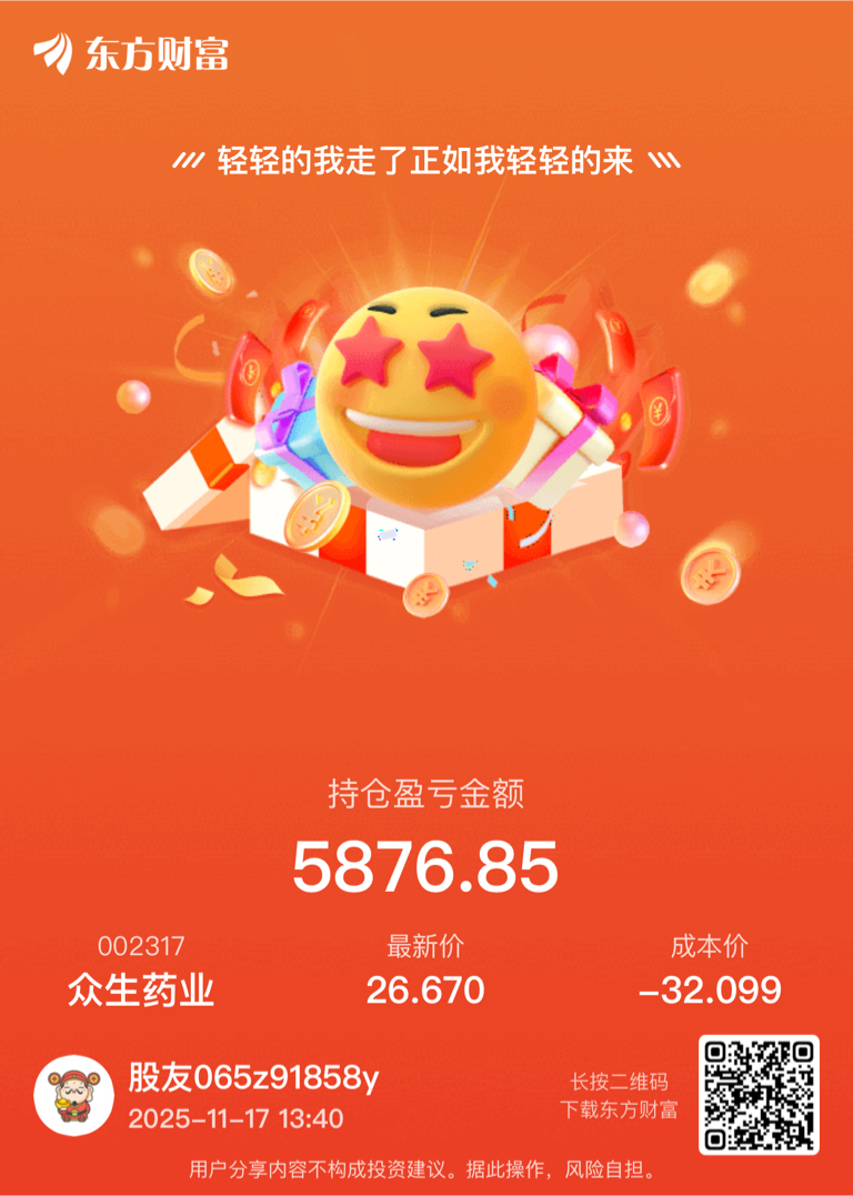$众生药业(SZ002317)$ 走了,留下的兄弟们发财,低点再接回来