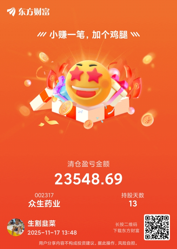 $众生药业(SZ002317)$ 我心里承受力差,不玩了,拜拜各位兄弟。