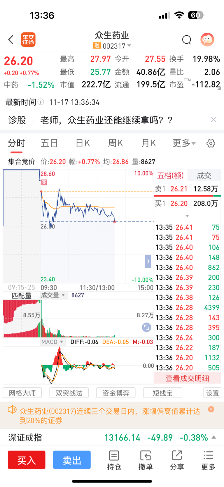 $众生药业(SZ002317)$ 那么高买进来的不拉回去吗