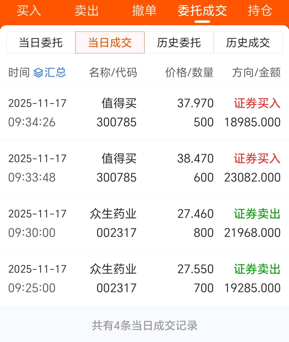 上周四买入的众生今天集合竞价和开盘第一时间卖出。虽然资金少,但是操作心得体会少不