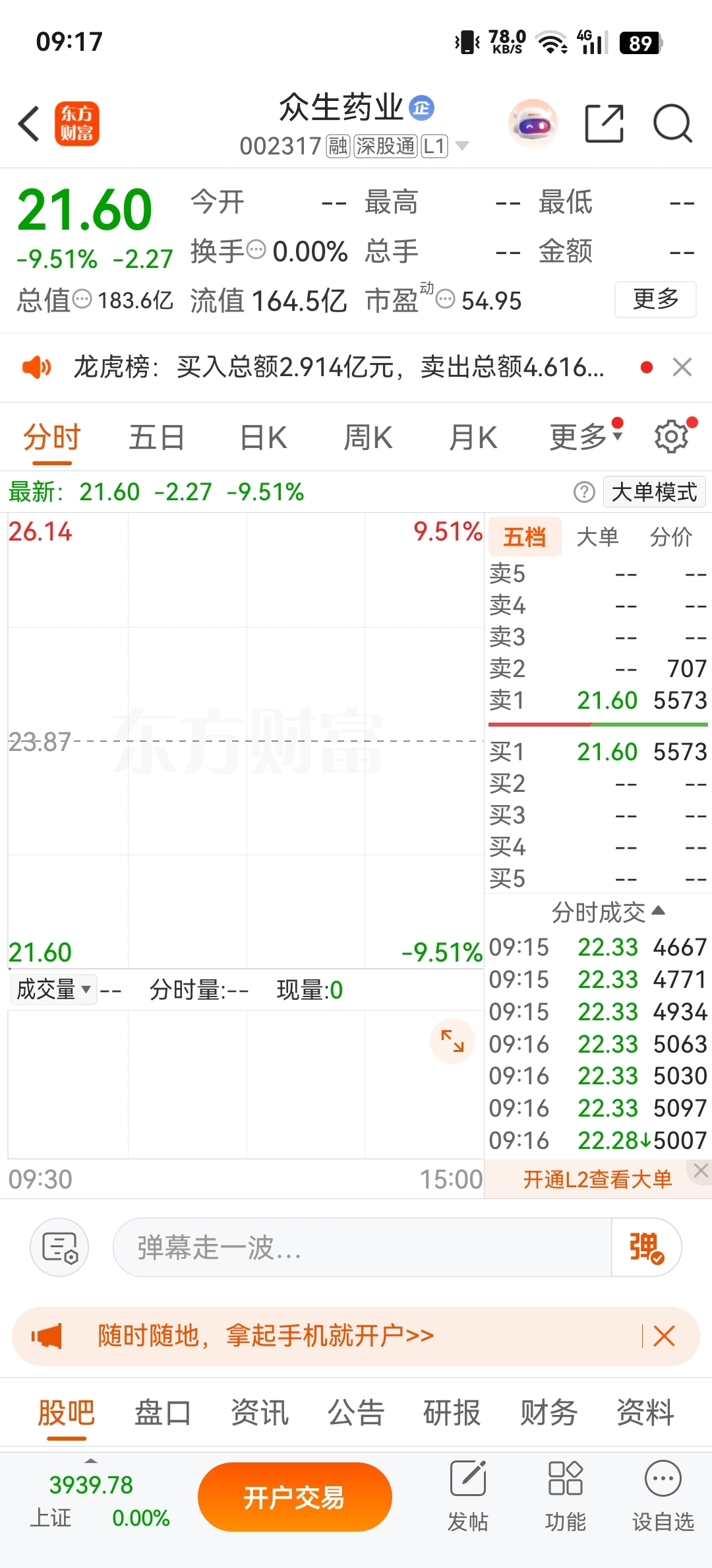 $众生药业(SZ002317)$ 还是跌停的节奏啊