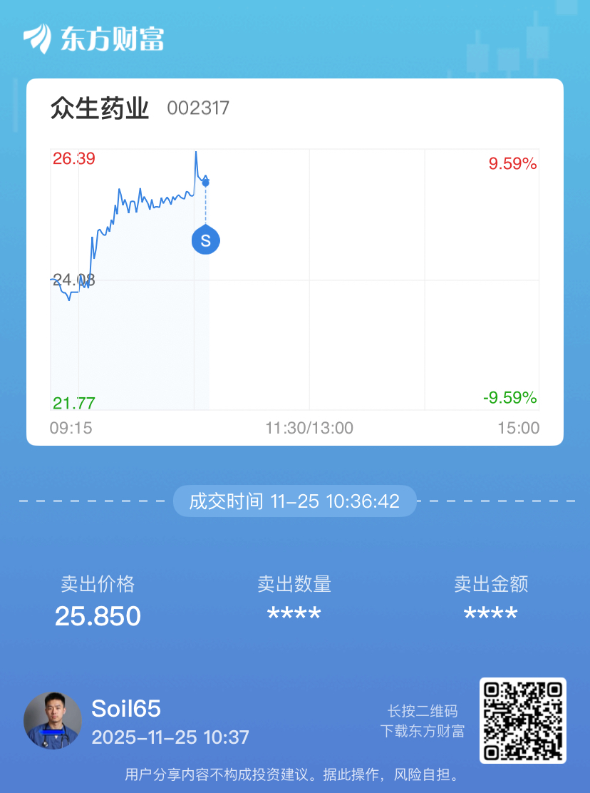 $众生药业(SZ002317)$ 卖了,做下一只
