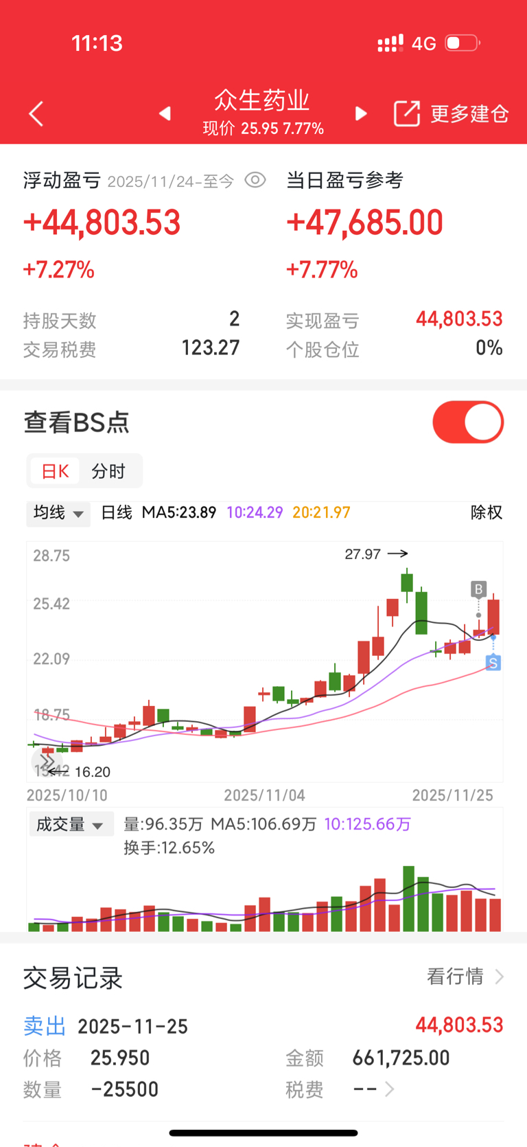 $众生药业(SZ002317)$ 不等了,可以了,止盈出局,昨天进今天盈利七个点,满意