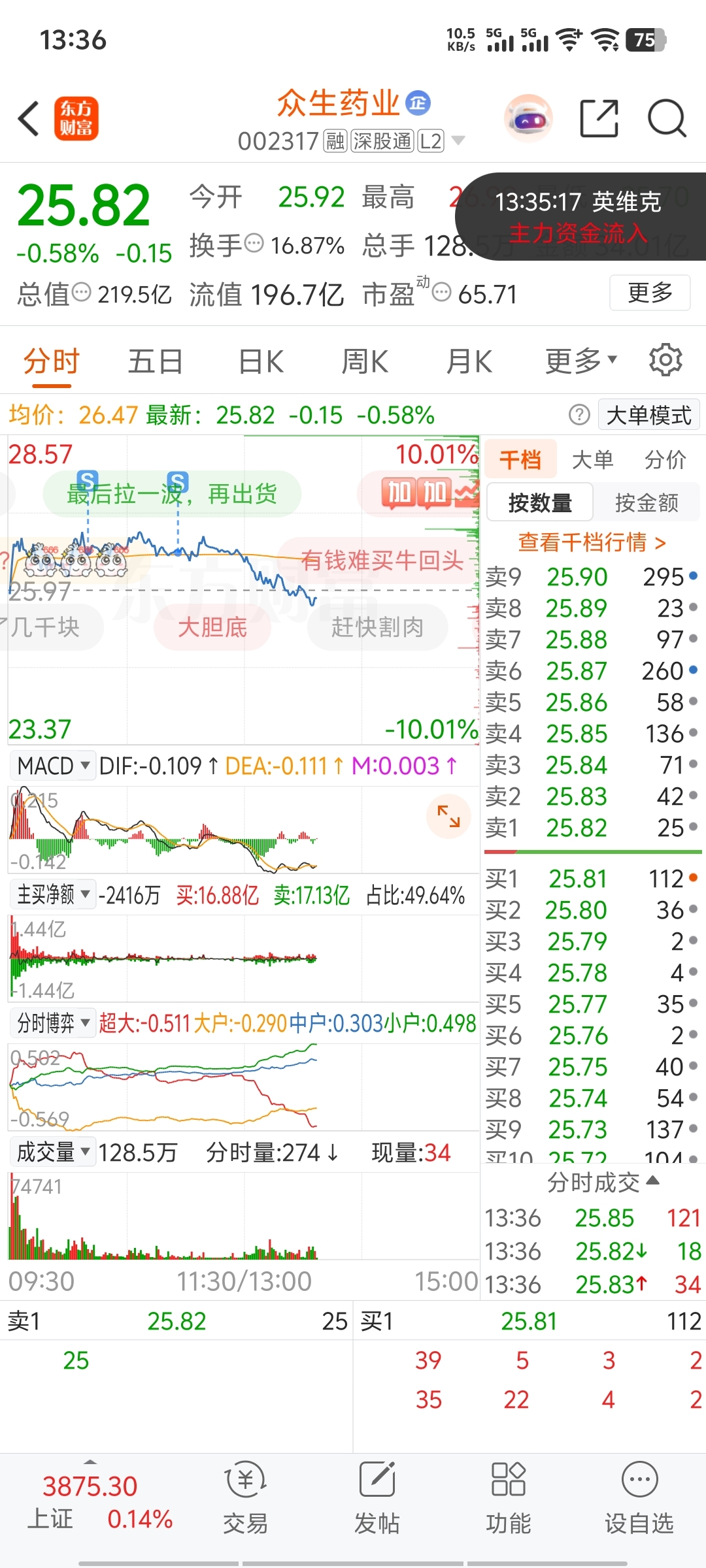 $众生药业(SZ002317)$ 无聊那么热加上接近前高压力冲啊,我还有底仓呢