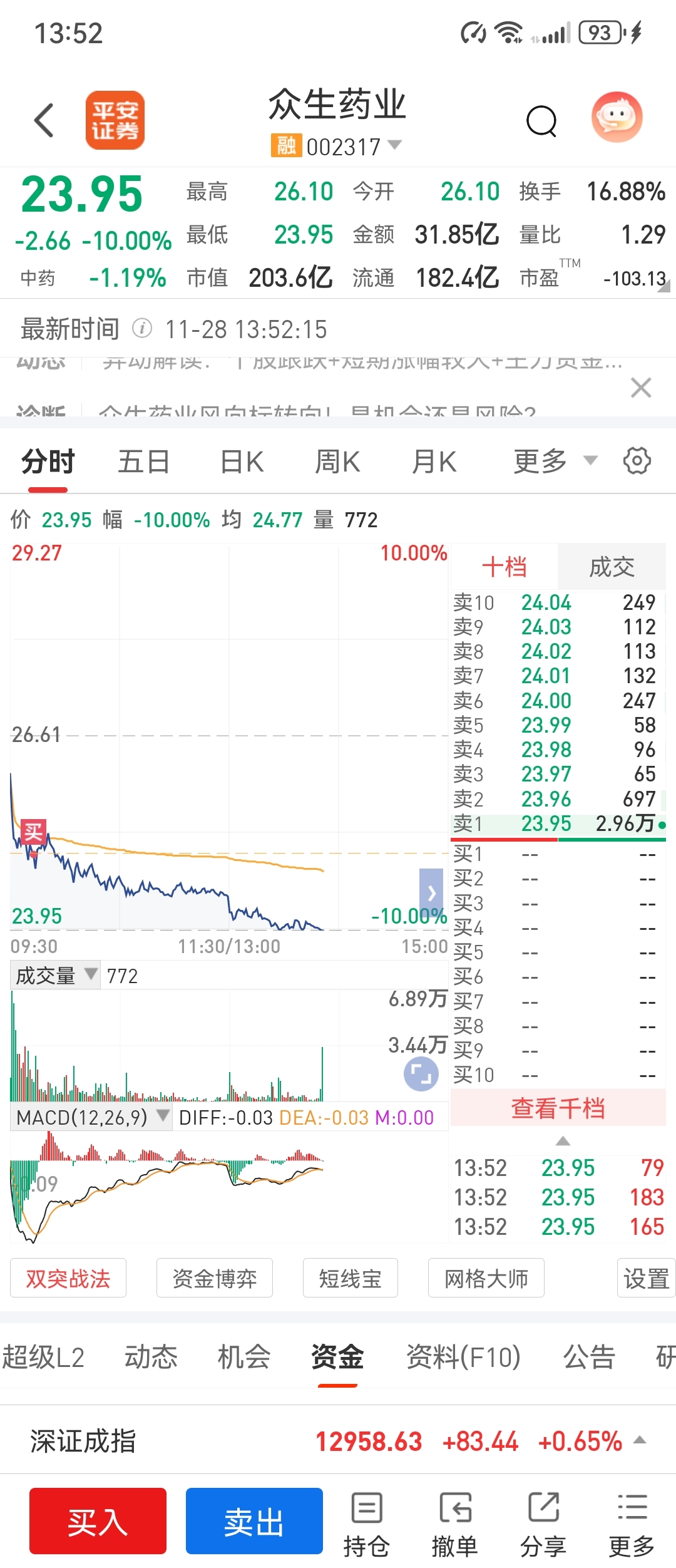 $众生药业(SZ002317)$ 刚来就吃跌停呀