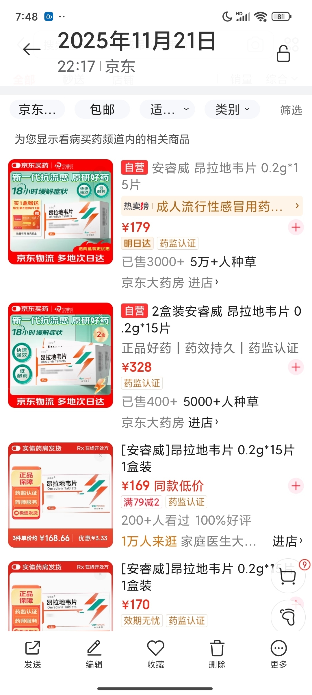 甲型流感爆发,京东大药房“安睿威”截屏一周销售量翻翻。密切跟踪