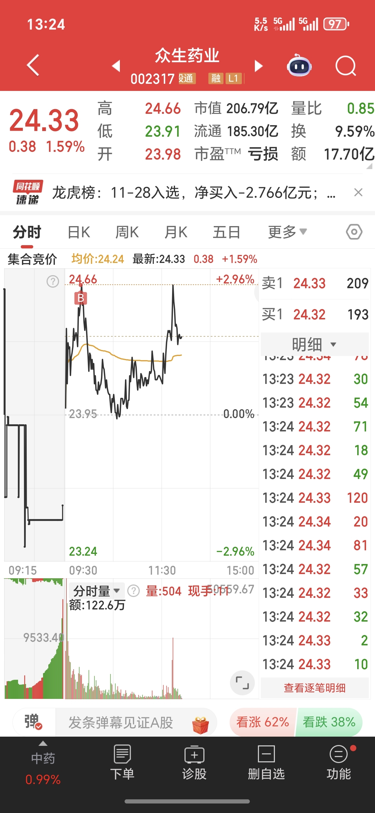 $众生药业(SZ002317)$ 不好意思各位,庄已经被我这买点压制了