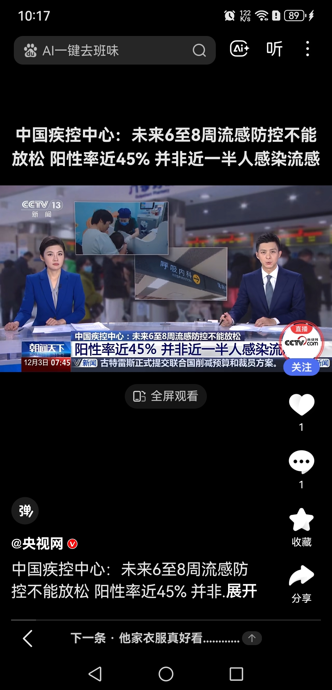 $众生药业(SZ002317)$ 中央新闻播了流感的事。