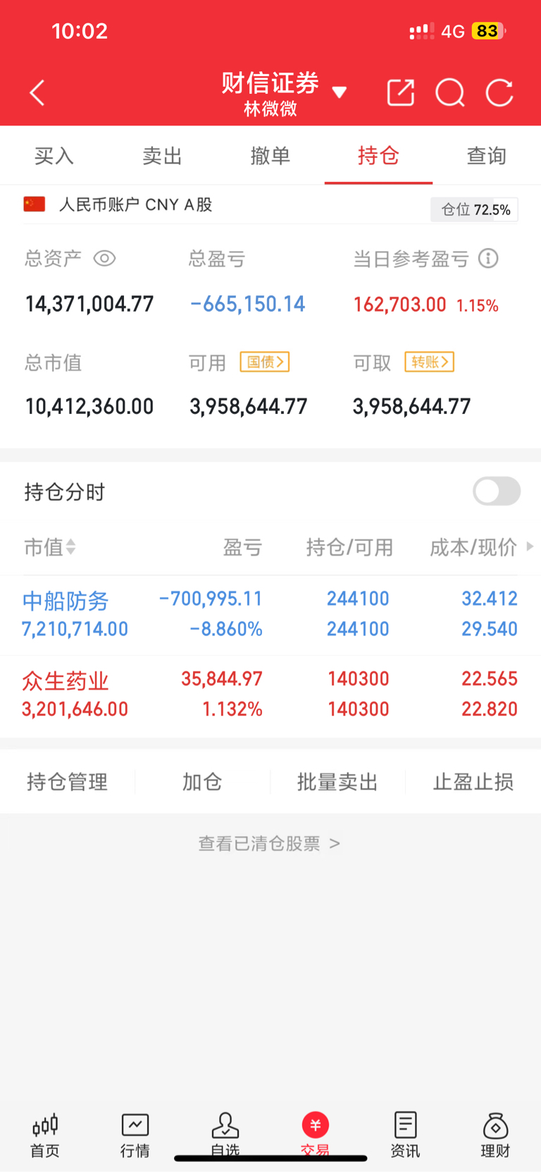 继续持有 $众生药业(SZ002317)$ $中船防务(SH600685)$ 这支具备增长潜力,我满怀期待,相信随着后续市场的发展,达成盈利目标。