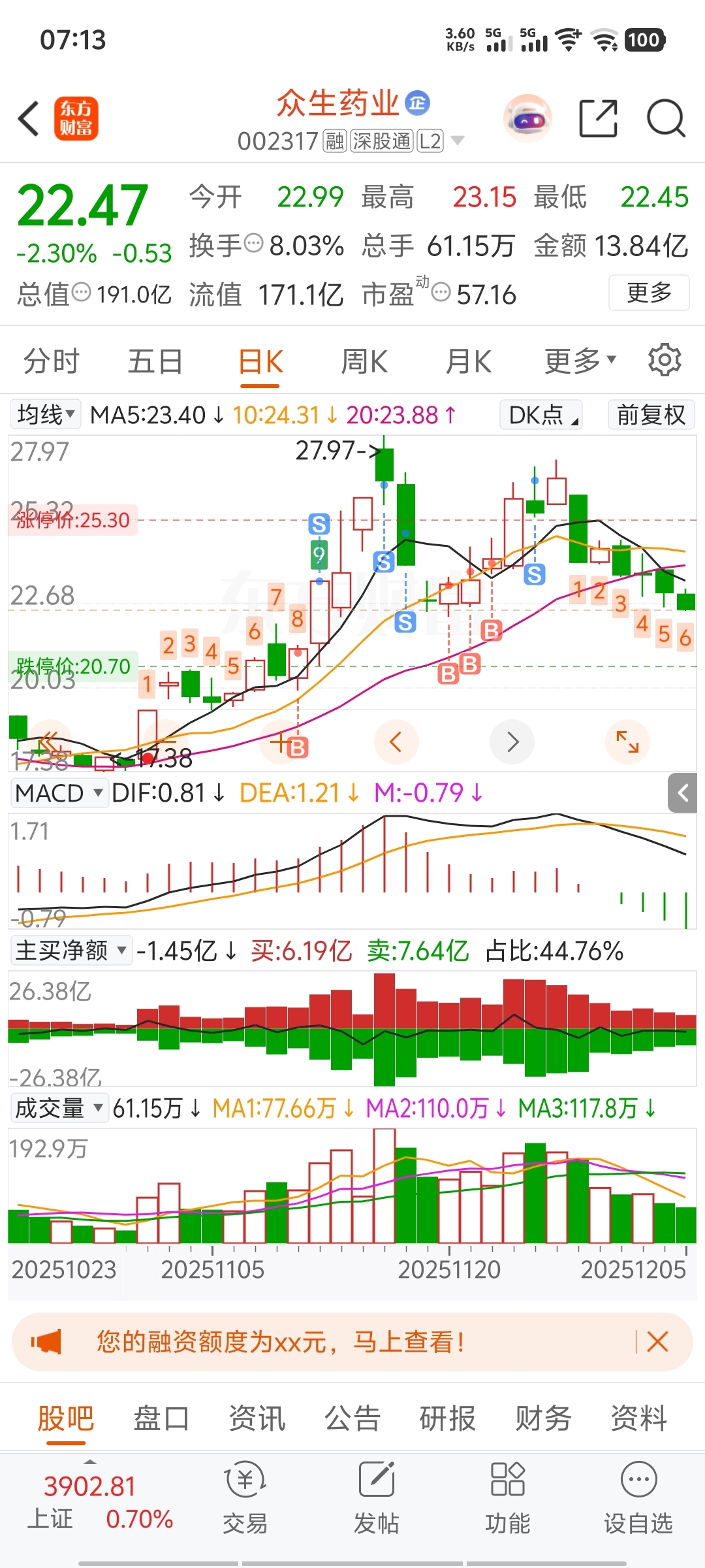 $众生药业(SZ002317)$ 还是没出手 今天看看情况
