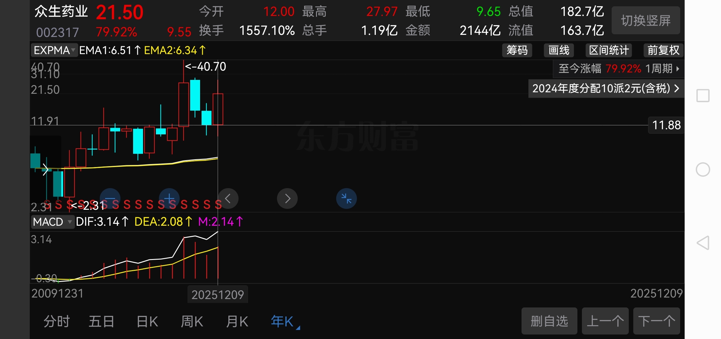 $众生药业(SZ002317)$ 走势已经很牛了,超过绝大部分的股票。