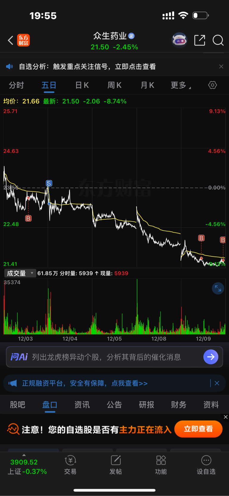 $众生药业(SZ002317)$ 我不信你还跌