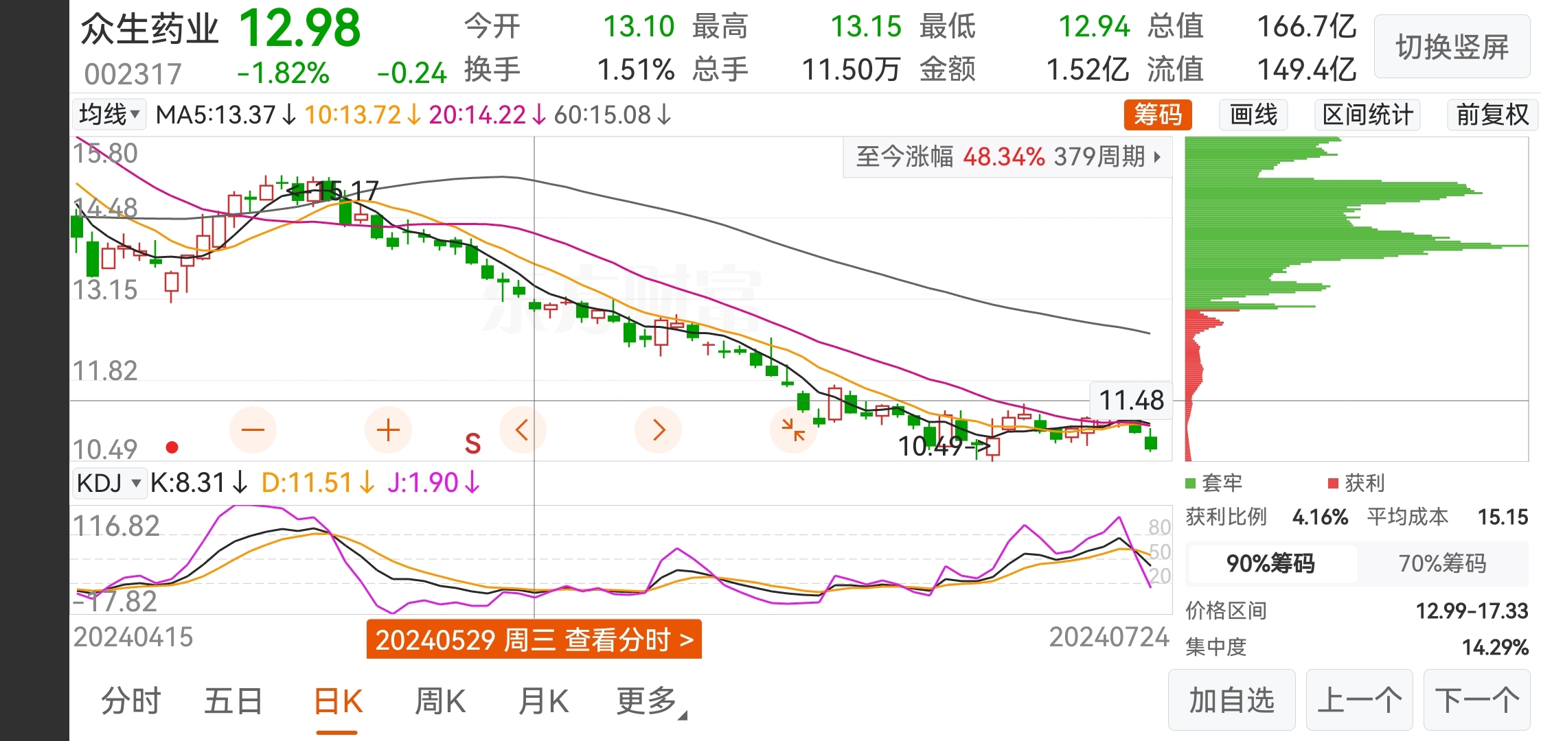 $众生药业(SZ002317)$ 之前走出过这种行情,众生真是厉害,十一连阴后,横盘五天,然后继续阴跌7、8天,这个庄稼真可谓,,……………………………