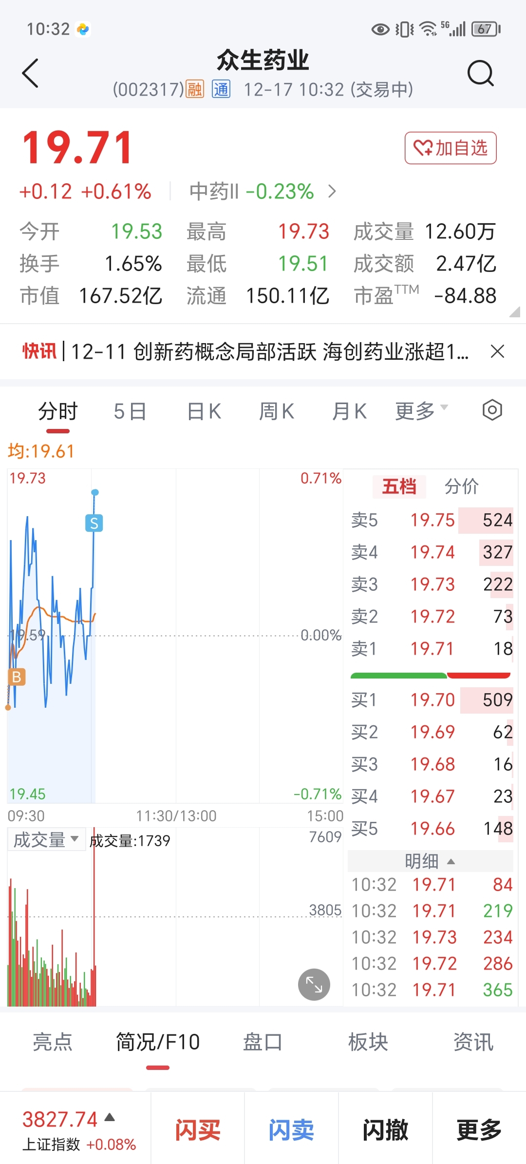 $众生药业(SZ002317)$ 买菜钱有了,下来再买,拉上去看情况减仓