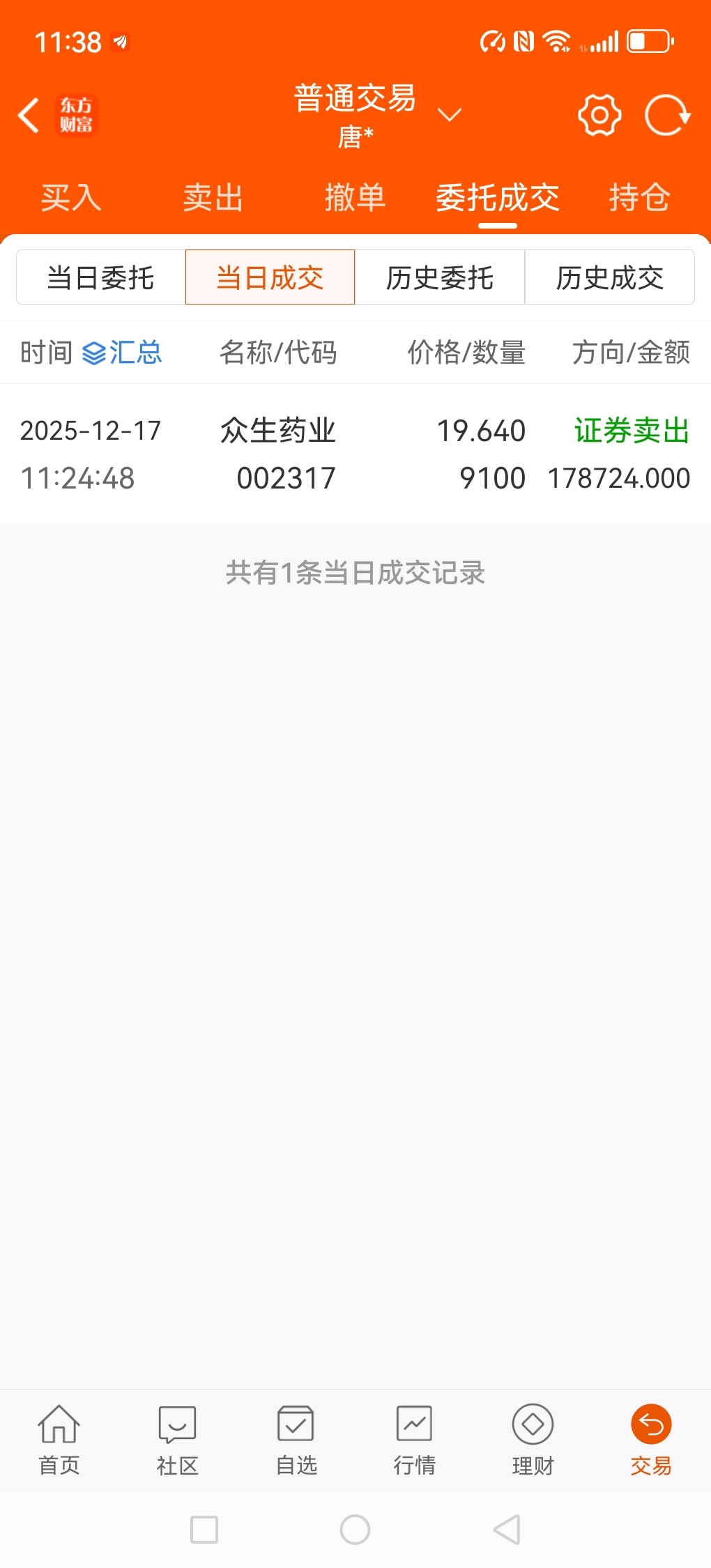 下午可能要拉了,我刚挂19.64瞬间吃掉了,我就知道卖错了