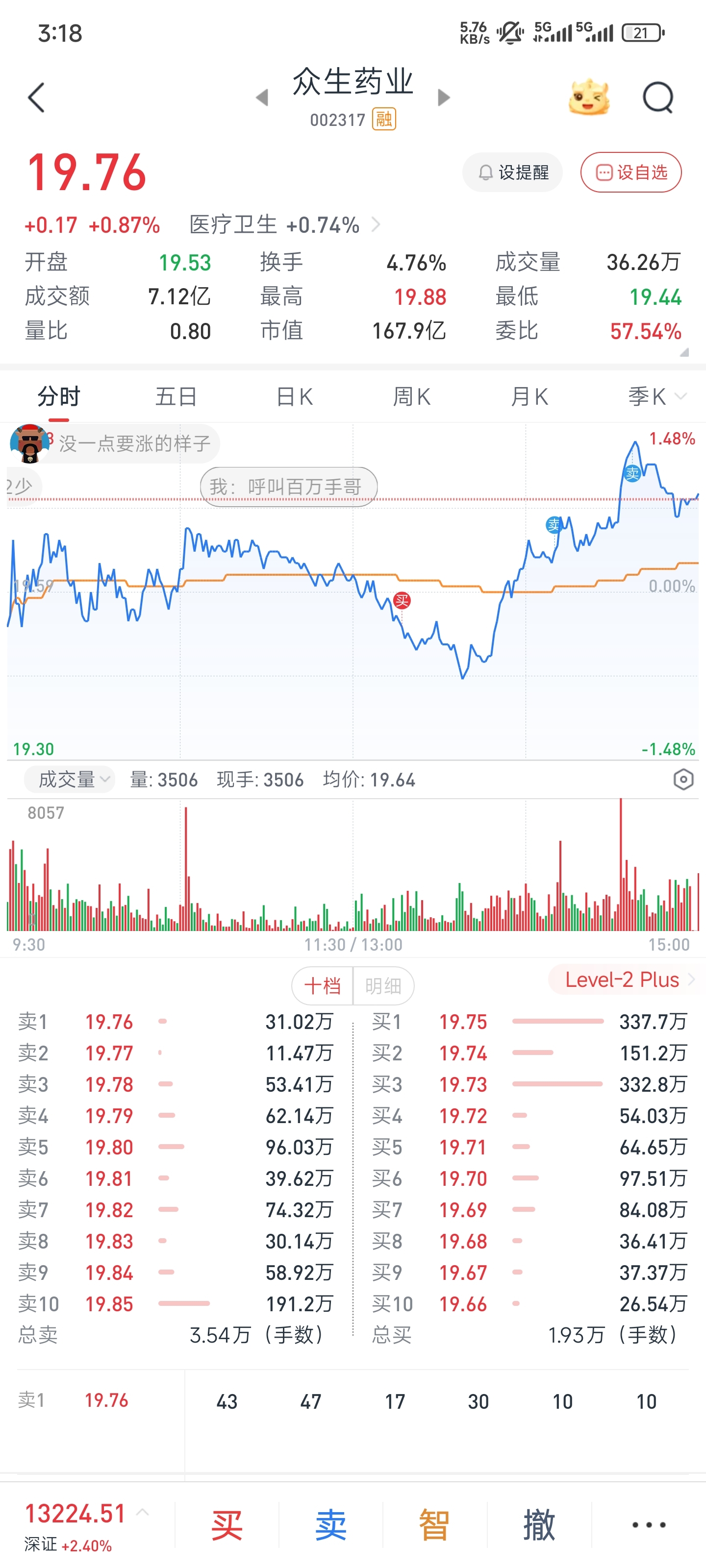昨日抄底失败,今天抄在山腰,好在大部分卖在高点。成本与尾盘价持平。还是被主力算死