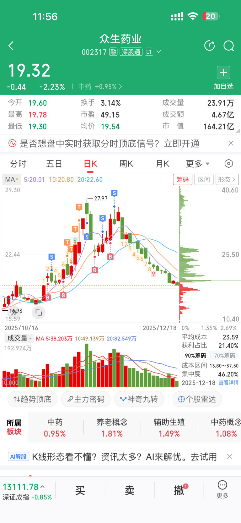 $众生药业(SZ002317)$ 庆幸自己没有过多停留