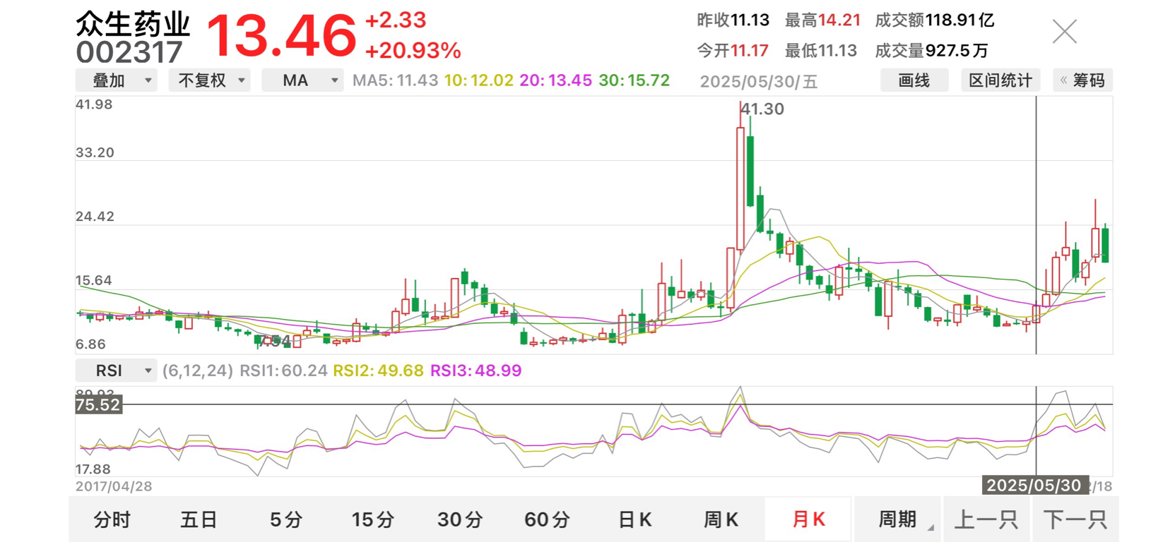 $众生药业(SZ002317)$ 这种走势的票也敢碰