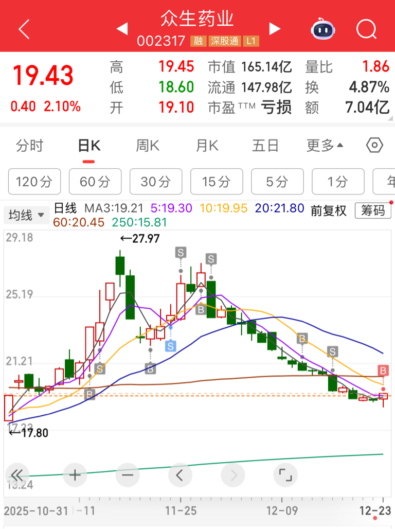 $众生药业(SZ002317)$ 买定离手,收盘看开大小了