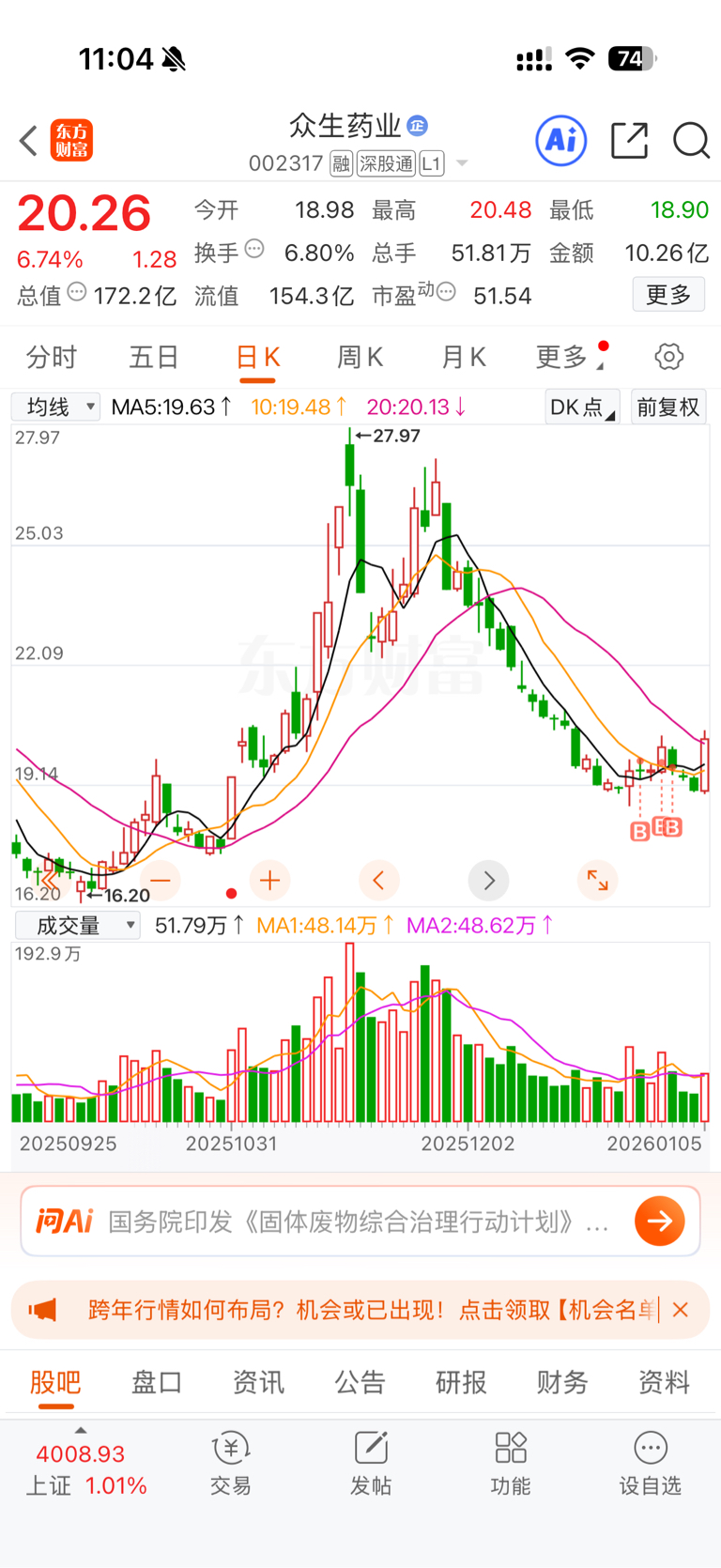 $众生药业(SZ002317)$ 连续加仓3次,因为我知道,如果熬不过下跌,就熬不过上涨! 实盘组合有记录