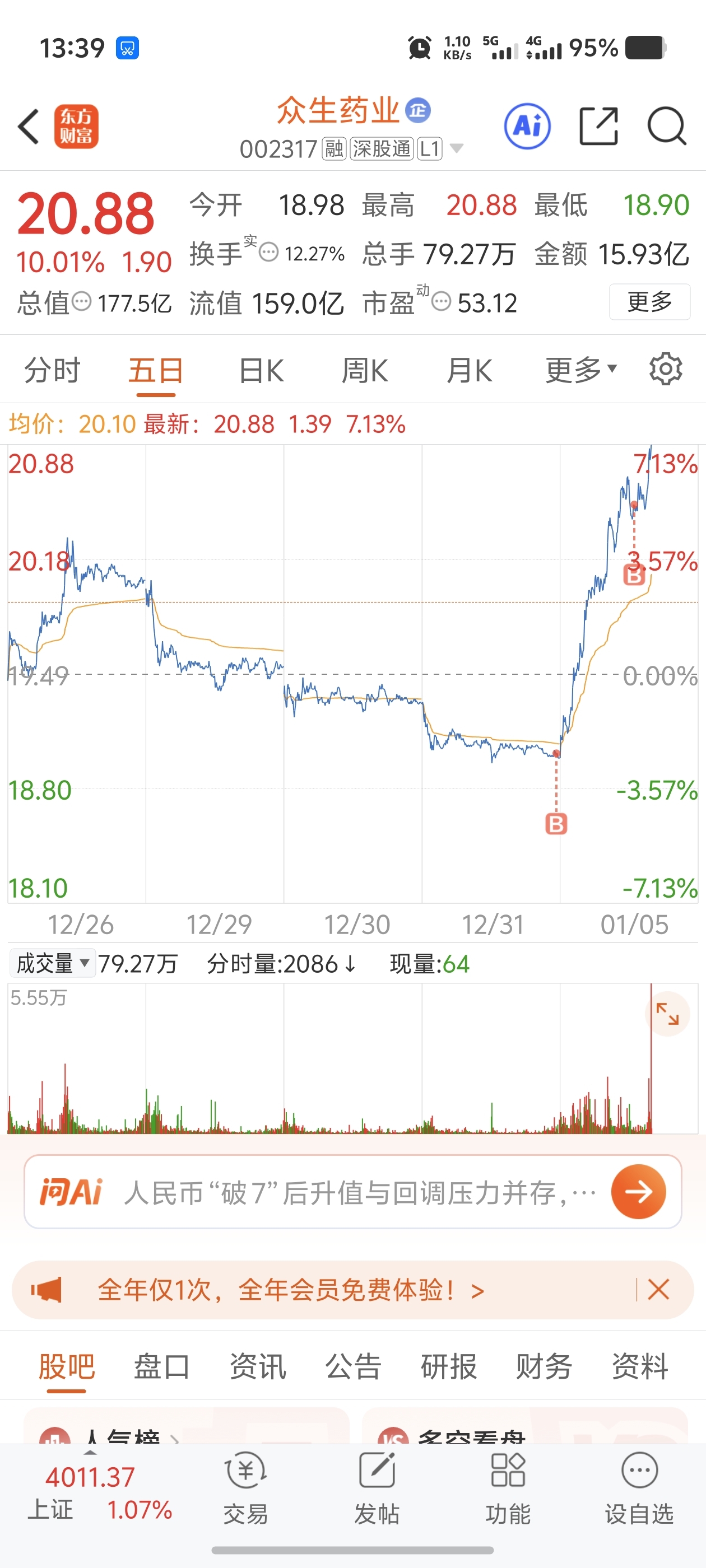 $众生药业(SZ002317)$ 唉底仓拿少了