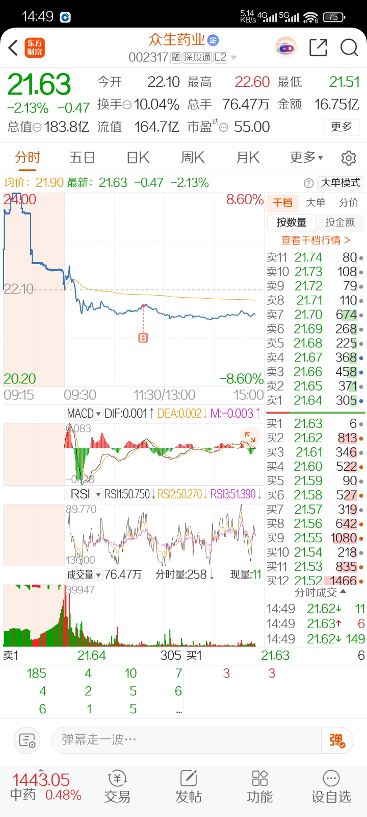 $众生药业(SZ002317)$ 除了早盘半小时,盘中最高点被我找到了,精准挂在盘中高点