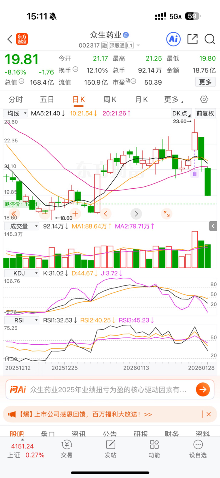 $众生药业(SZ002317)$ 都怪我,一加入自选它就跌了。