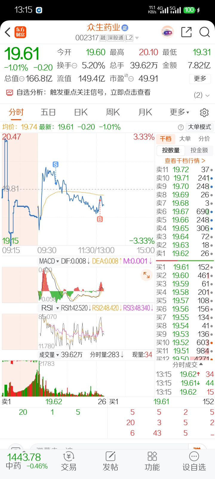 $众生药业(SZ002317)$ 我就不信我天天高抛低吸,降不了成本,现在我的成本已经变成21块6毛5,明天再做个T,我就看能不能把我成本降下来,不赚钱绝不走人