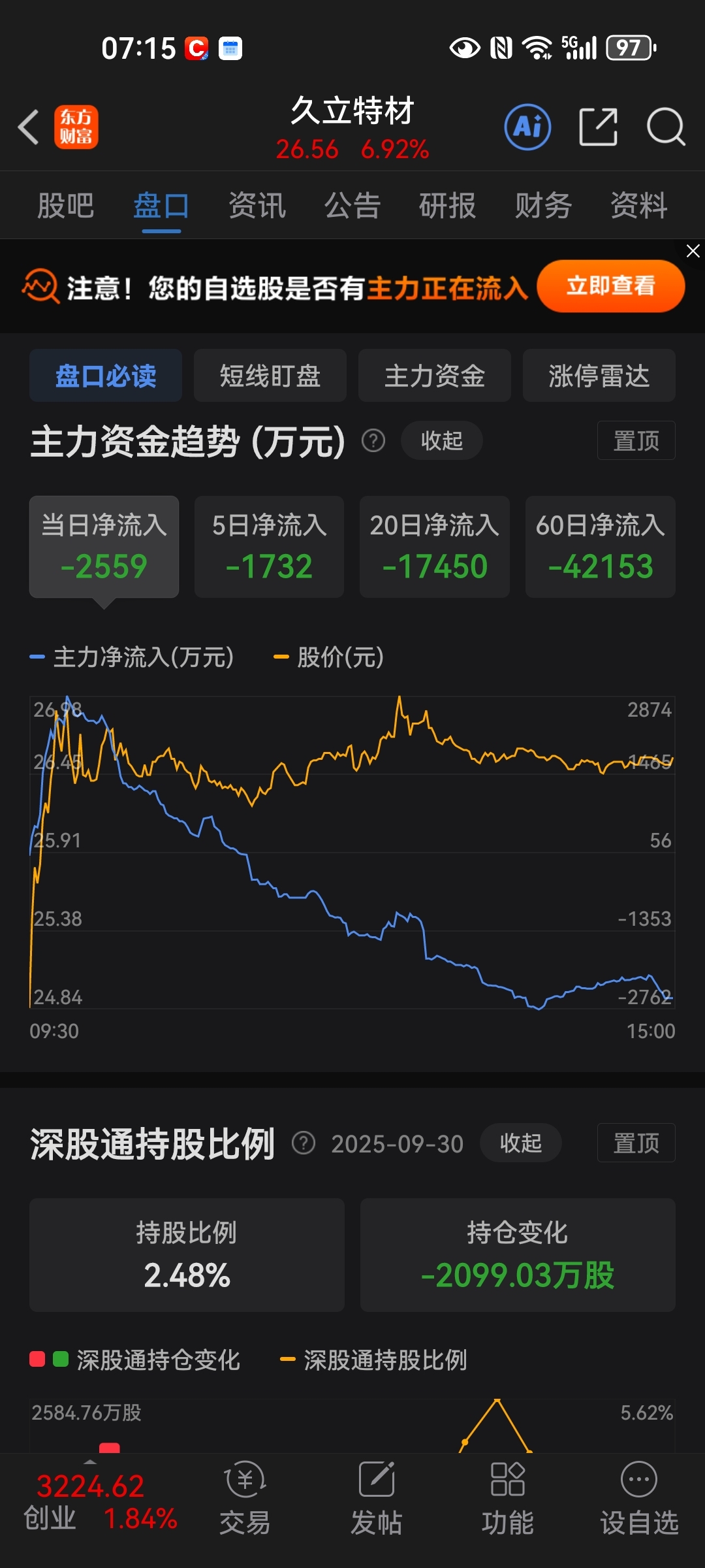$久立特材(SZ002318)$ 主力资金流出2556万,明天跌3个点,继续出货,股价已经5倍了!