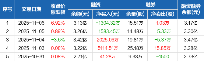 久立特材:融资净偿还1304.32万元,融资余额3.13亿元(11-06)