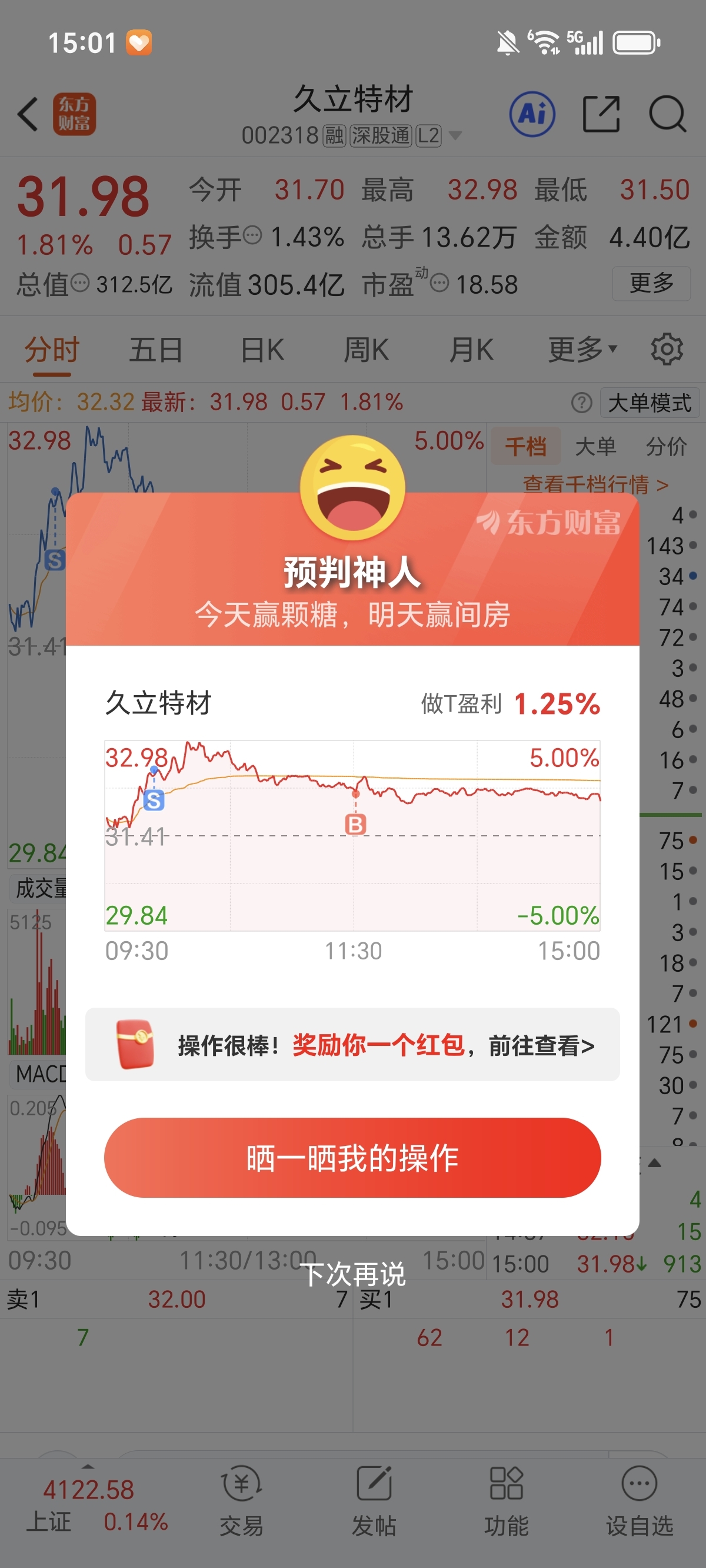 $久立特材(SZ002318)$ 高点没抓到。。。32.5卖的。