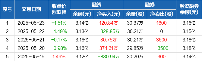 海峡股份:融资净买入120.84万元,融资余额3.14亿元(05-23)