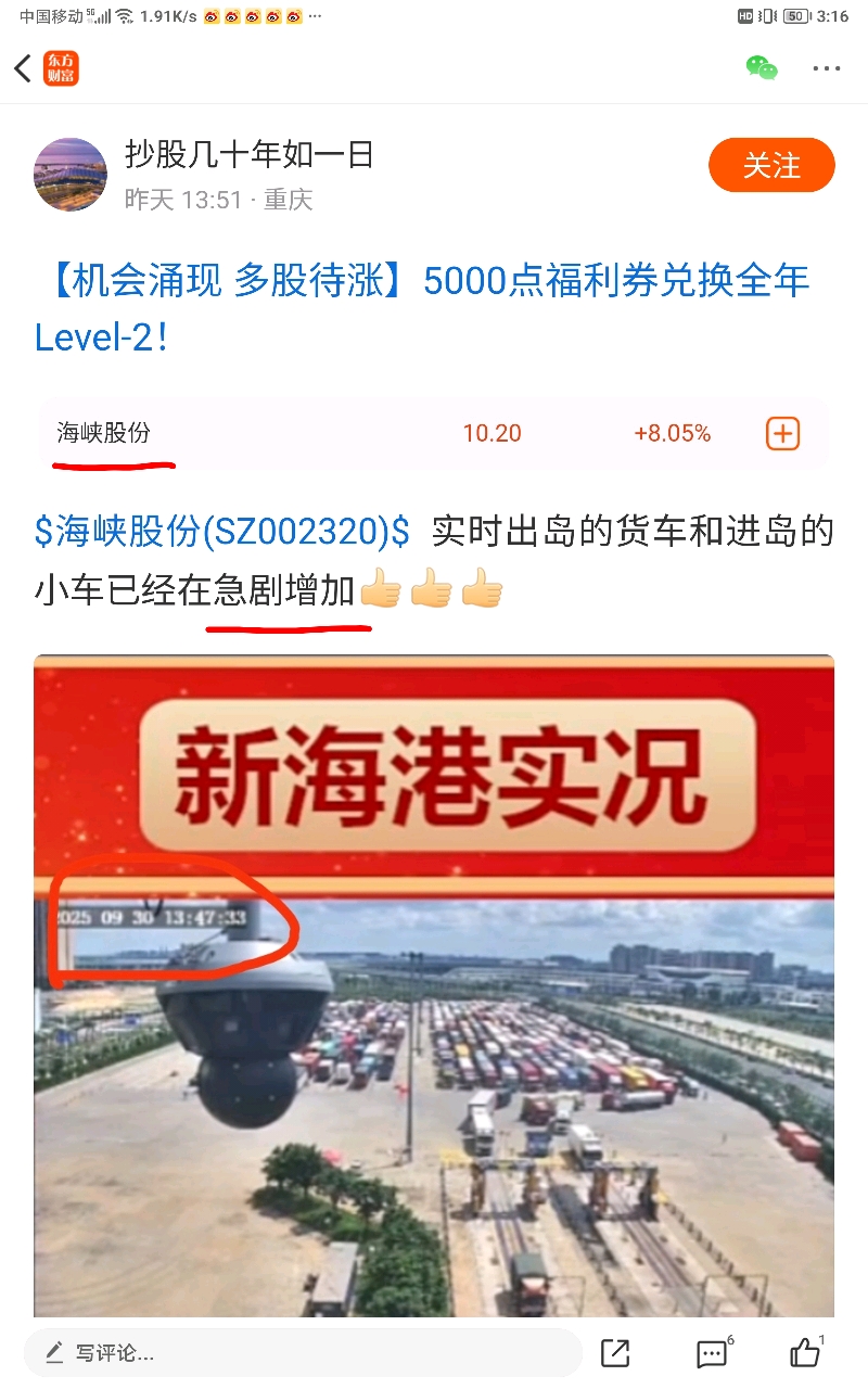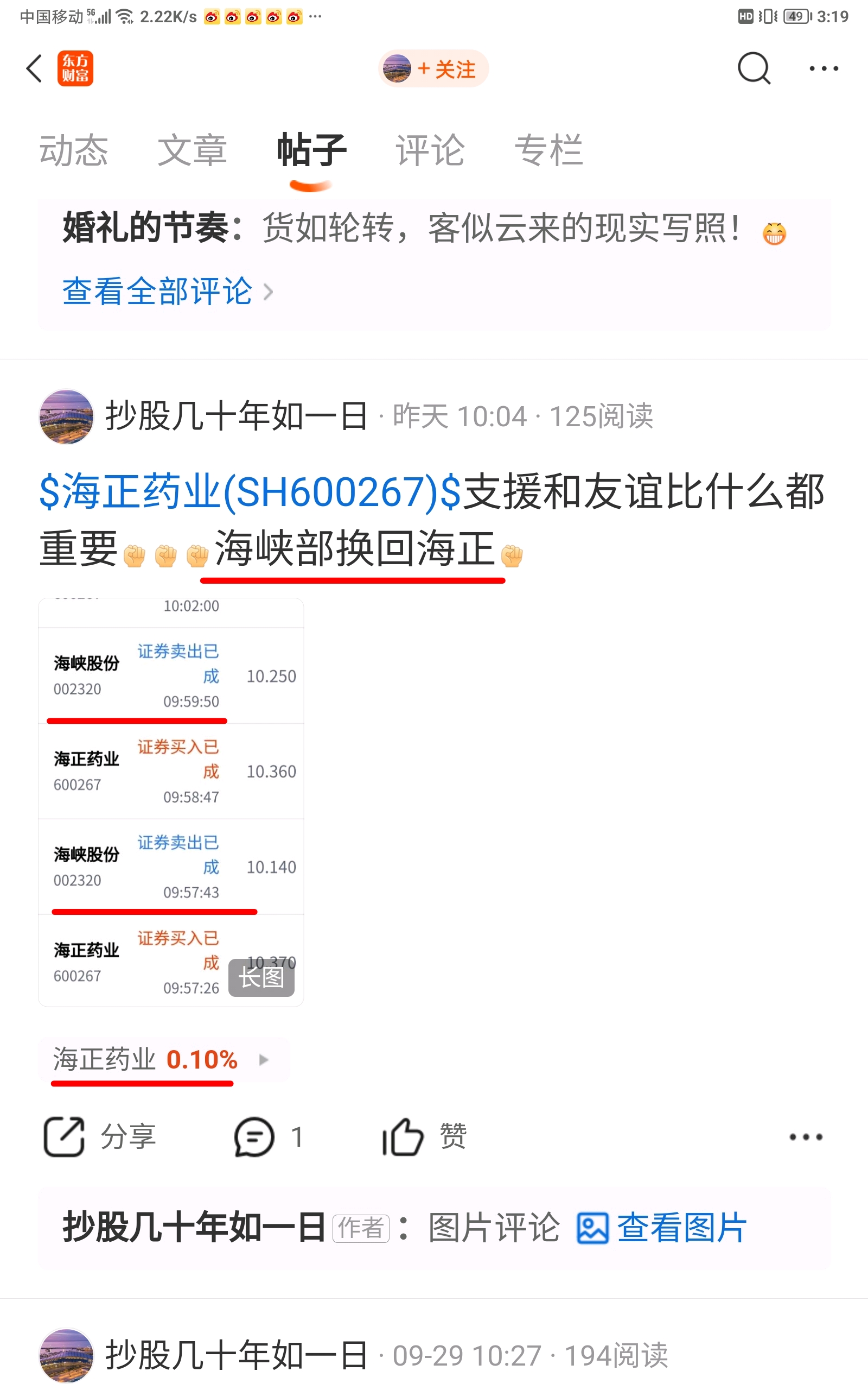 柚子炒股几十年如一旺正在唱多卖出海峡股份,诱导散户来接盘。