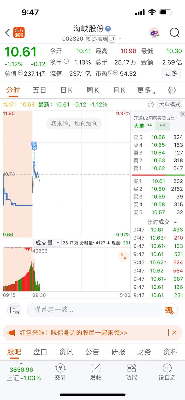$海峡股份(SZ002320)$ 拼的手速啊
