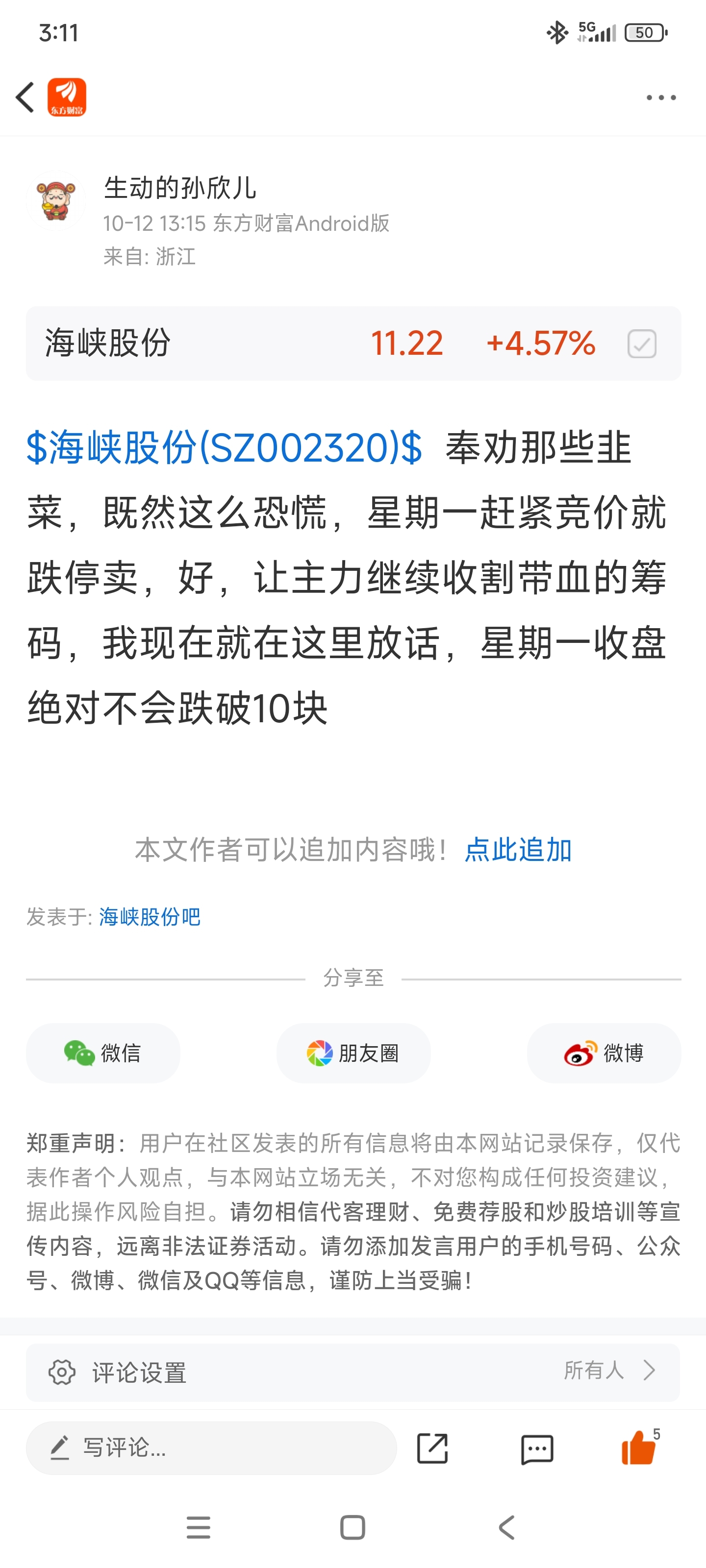 温馨提示: 1.根据《证券法》规定,禁止编造、传播虚假信息或者误导性信息,扰乱证券市场;2.用户在本社区发表的所有资料、言论等仅代表个人观点,与本网站立场无关,不对您构成任何投资建议。用户应基于自己的独立判断,自行决定证券投资并承担相应风险。《东方财富社区管理规定》