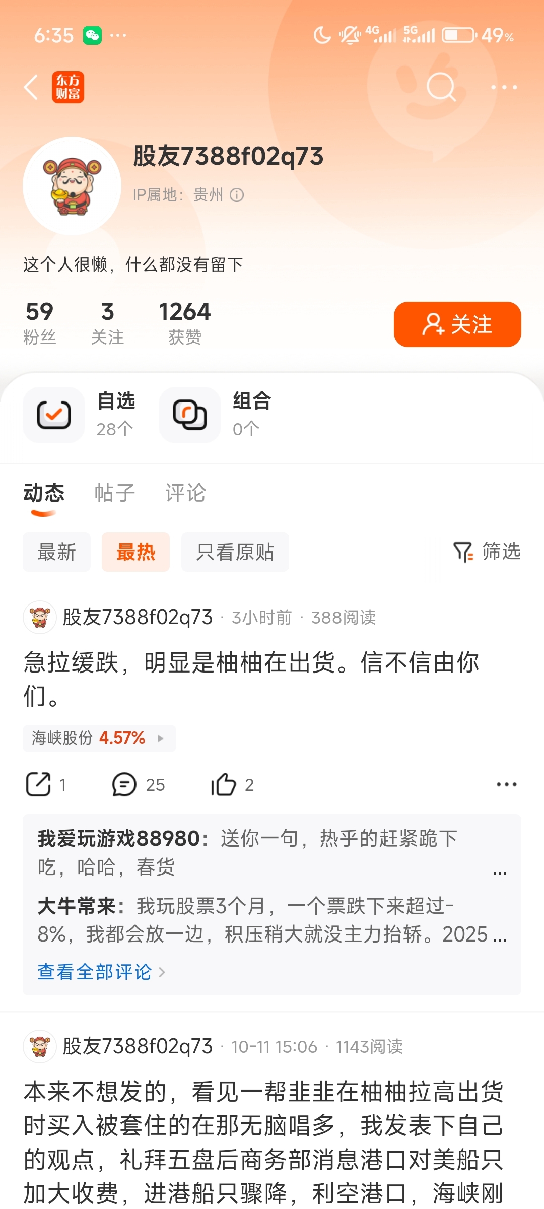 $海峡股份(SZ002320)$ 这个人到底是什么成分?他以为他的三言两语能影响一个股票的走势吗?