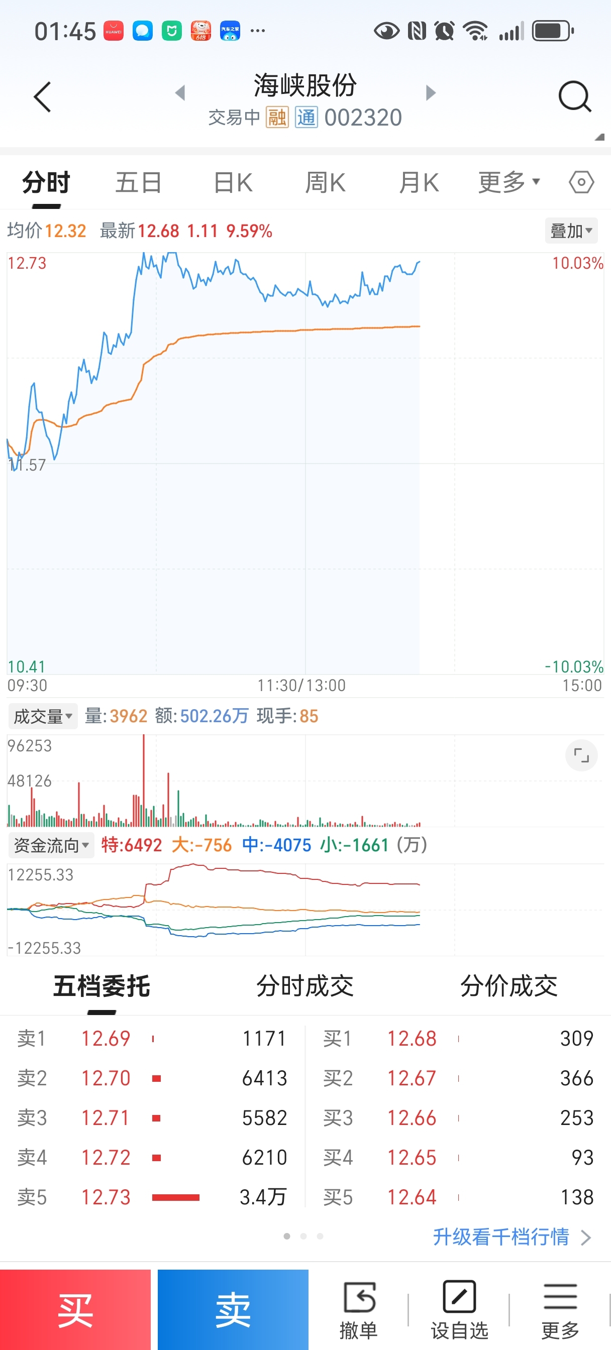 $海峡股份(SZ002320)$ 主力,最后5万手你不吃我来