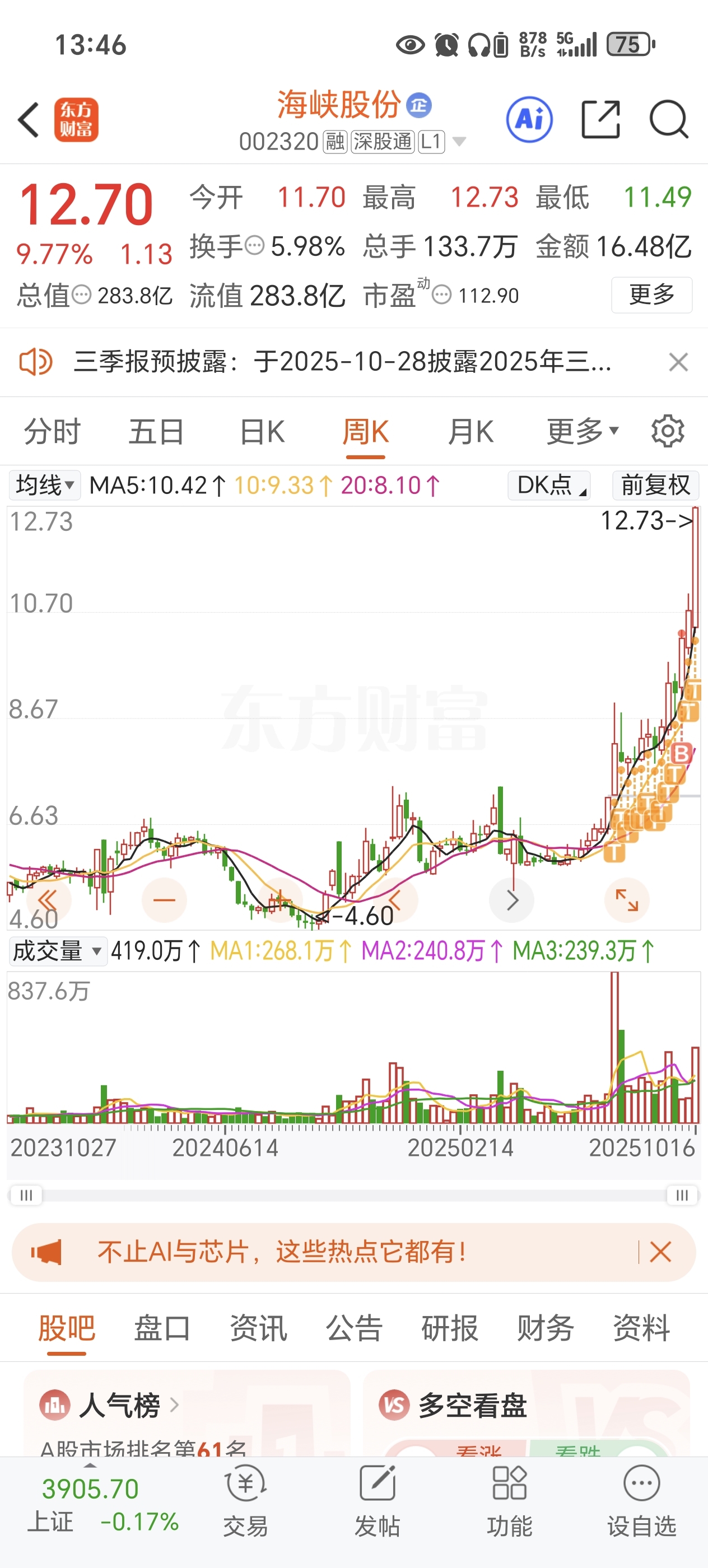 $海峡股份(SZ002320)$ 一路拿过来也不容易,买了半仓,凯撒半仓,你调整我就满仓另一只