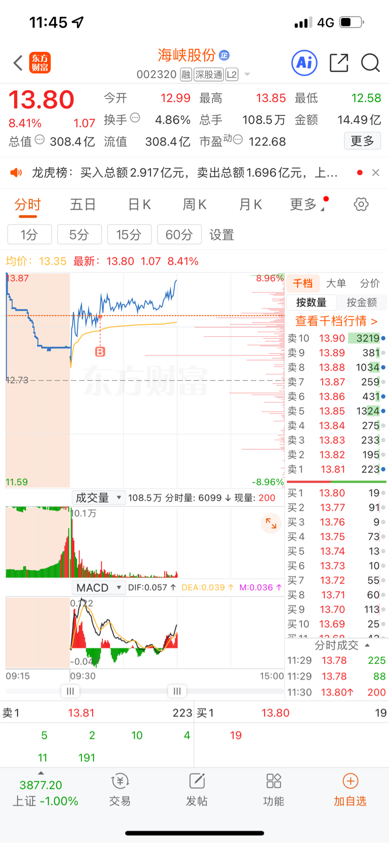 $海峡股份(SZ002320)$ 小仓位助力,让我赚个买菜钱,周末加餐