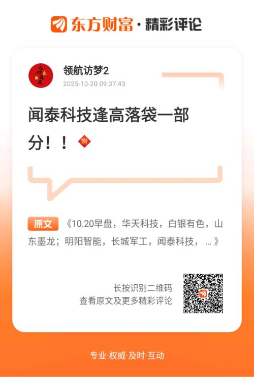 发表于 2025-10-20 09:50:42 东方财富Android版 发布于 福建