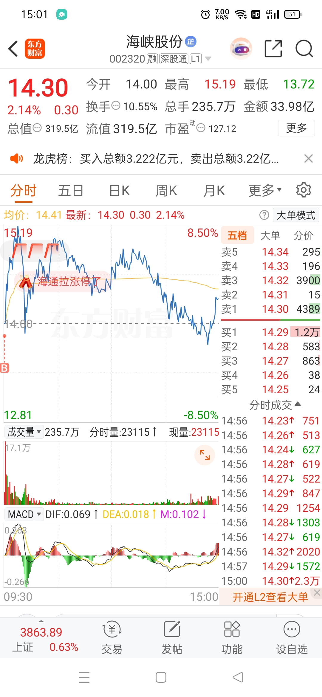 $海峡股份(SZ002320)$ 搞成盘中富贵,坑货啊