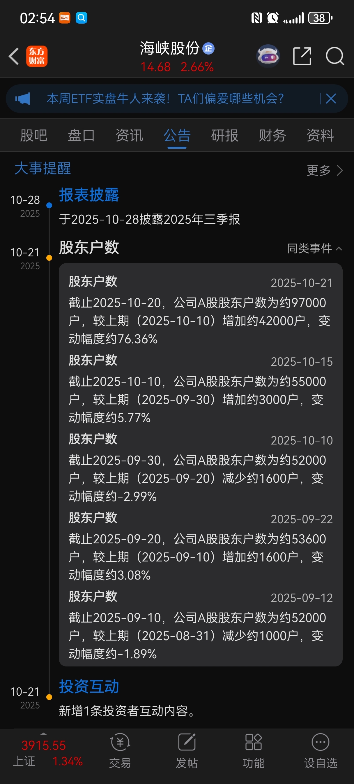 $海峡股份(SZ002320)$ 原来这里可以看股东数啊,难怪呢。