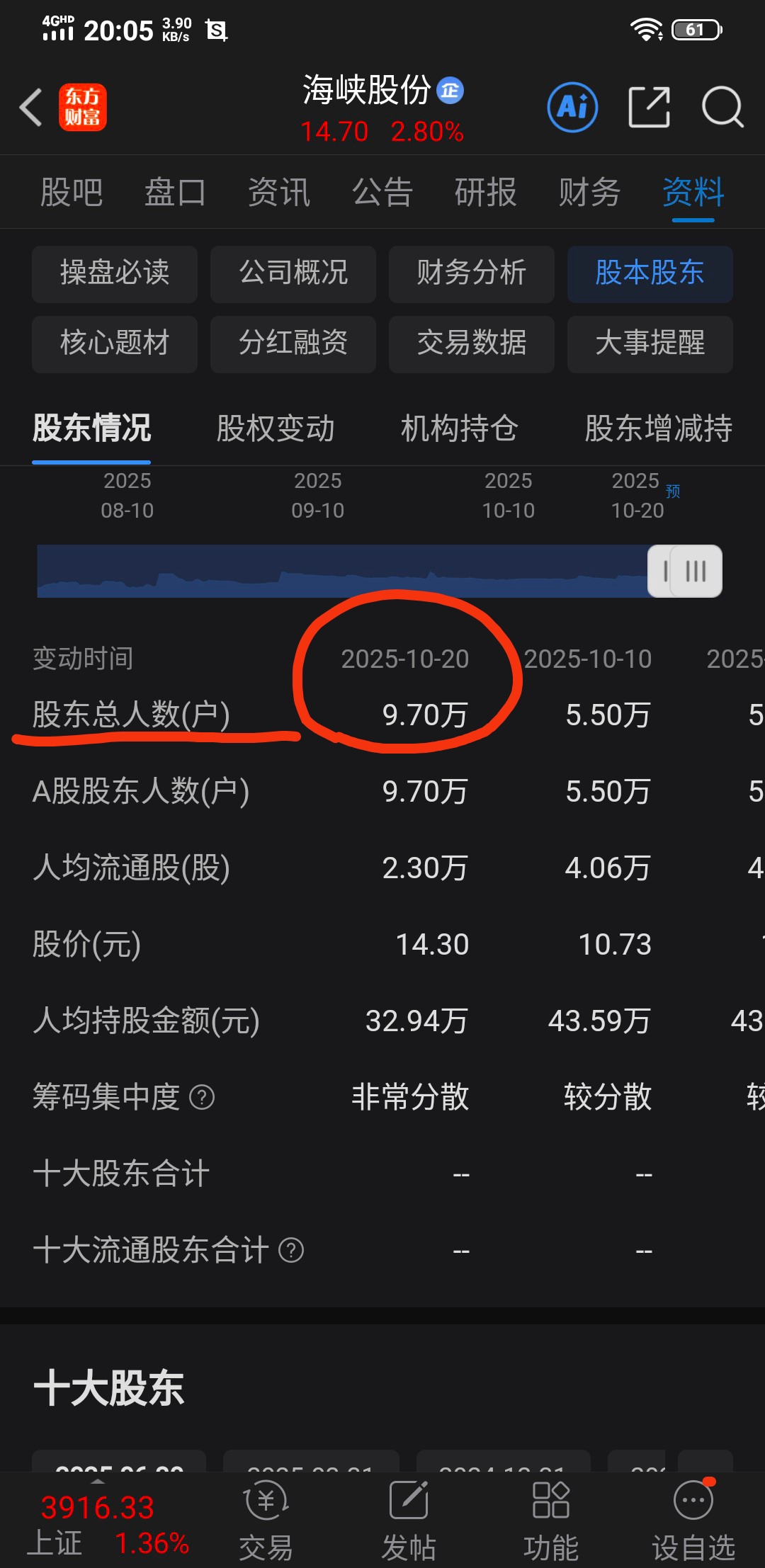 今天海峡股份的股东人数达9.7万人,散户增加快一倍,这证实了我们之前的预判,庄家