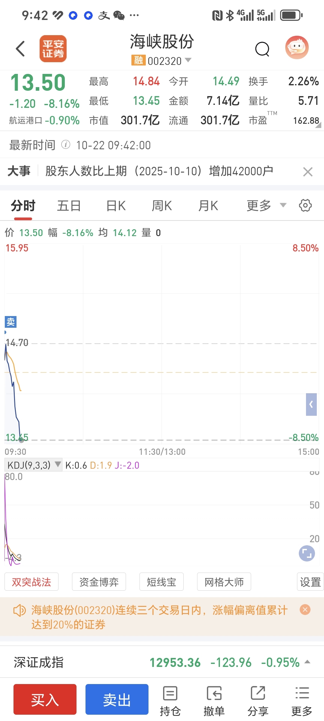 $海峡股份(SZ002320)$ 逃顶成功!多少要炫耀一下