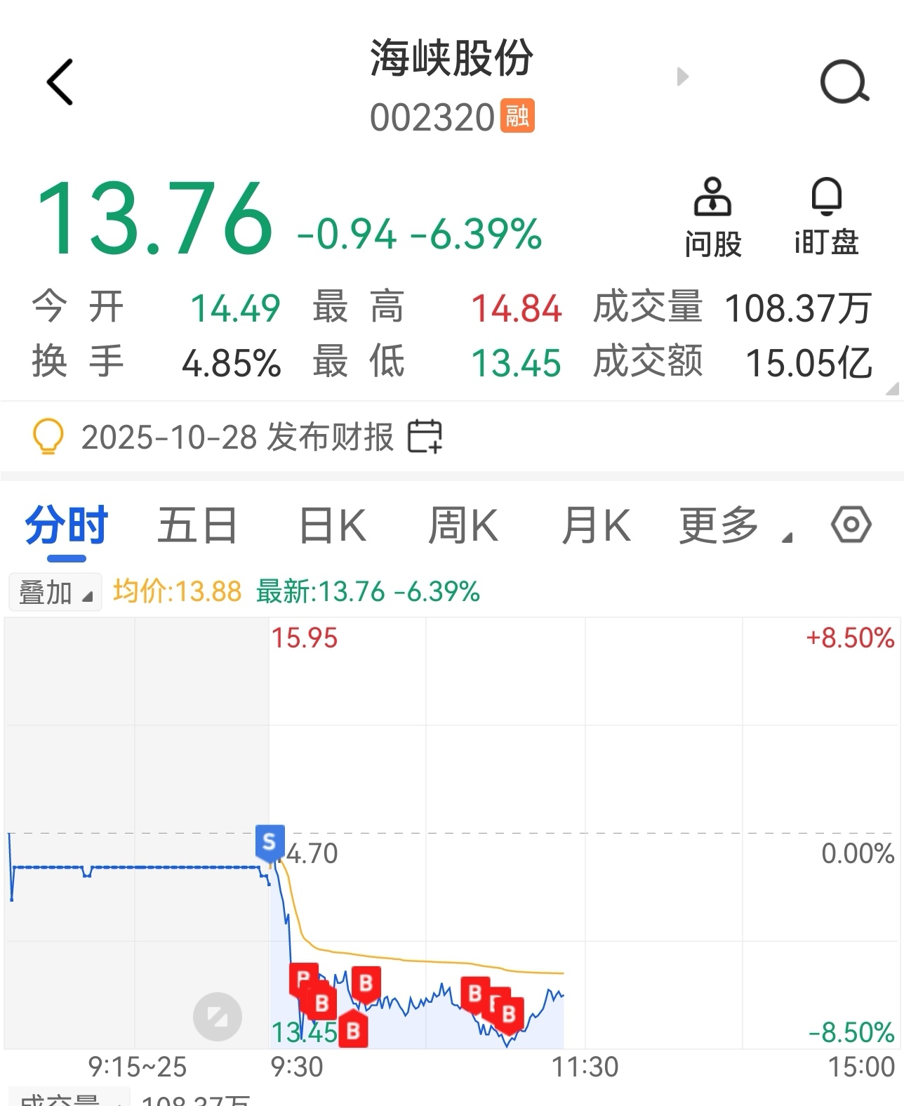 $海峡股份(SZ002320)$ 早盘又做了一手好T,干就完了
