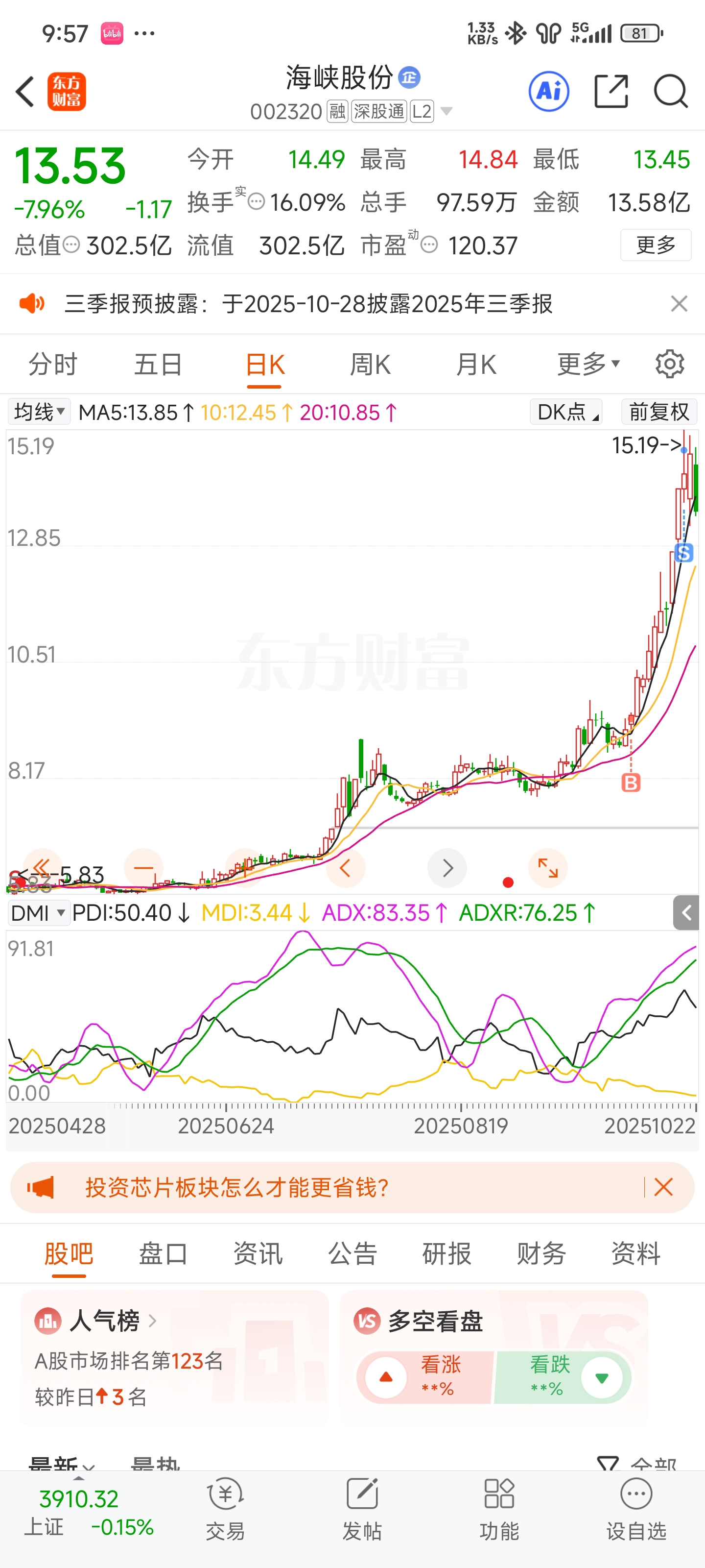 $海峡股份(SZ002320)$ 什么时候才是下一个买点啊