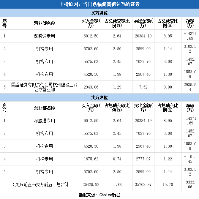 今日龙虎榜单上出现了深股通的身影,占据了买一、卖一的位置,净卖出1.44亿元,占当日成交总额的6.31%。