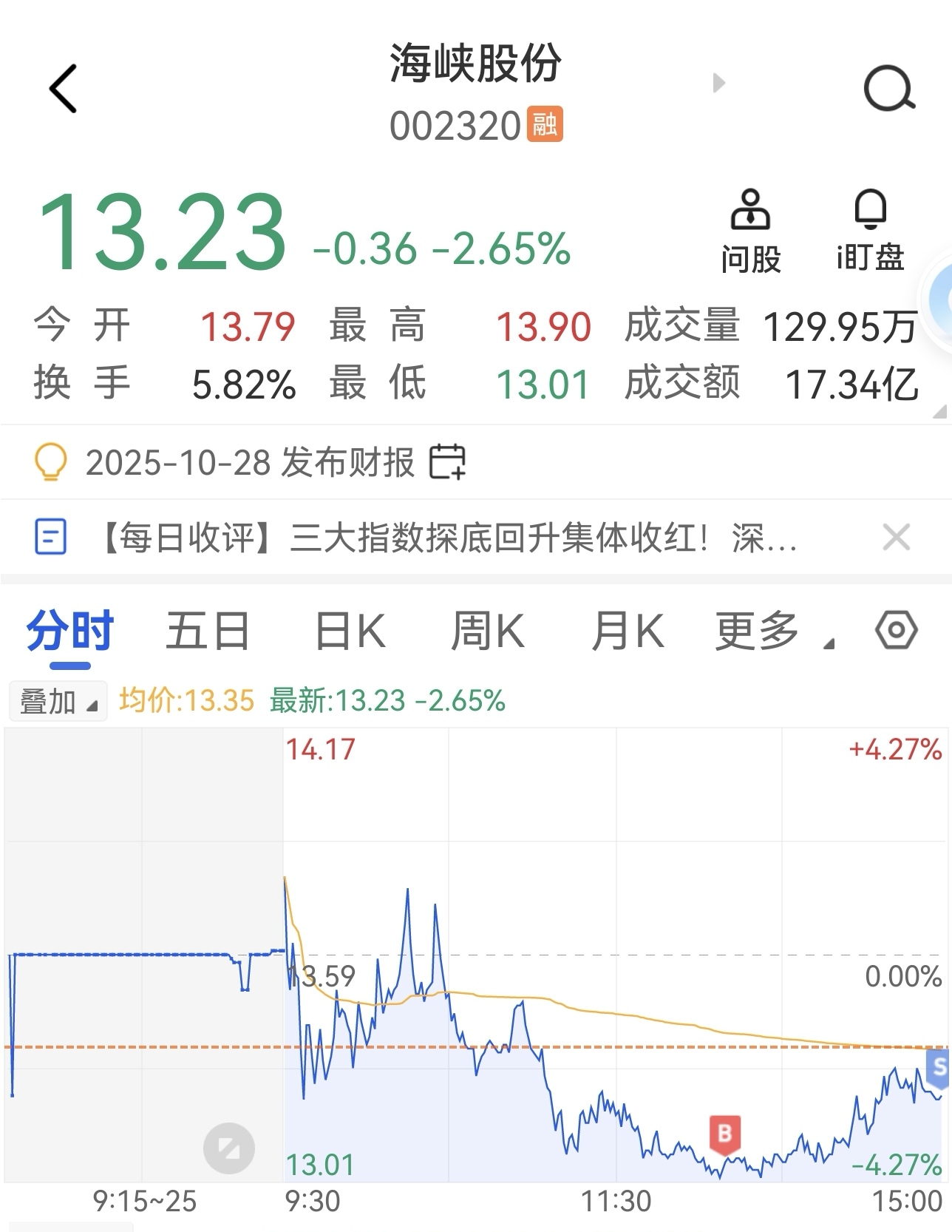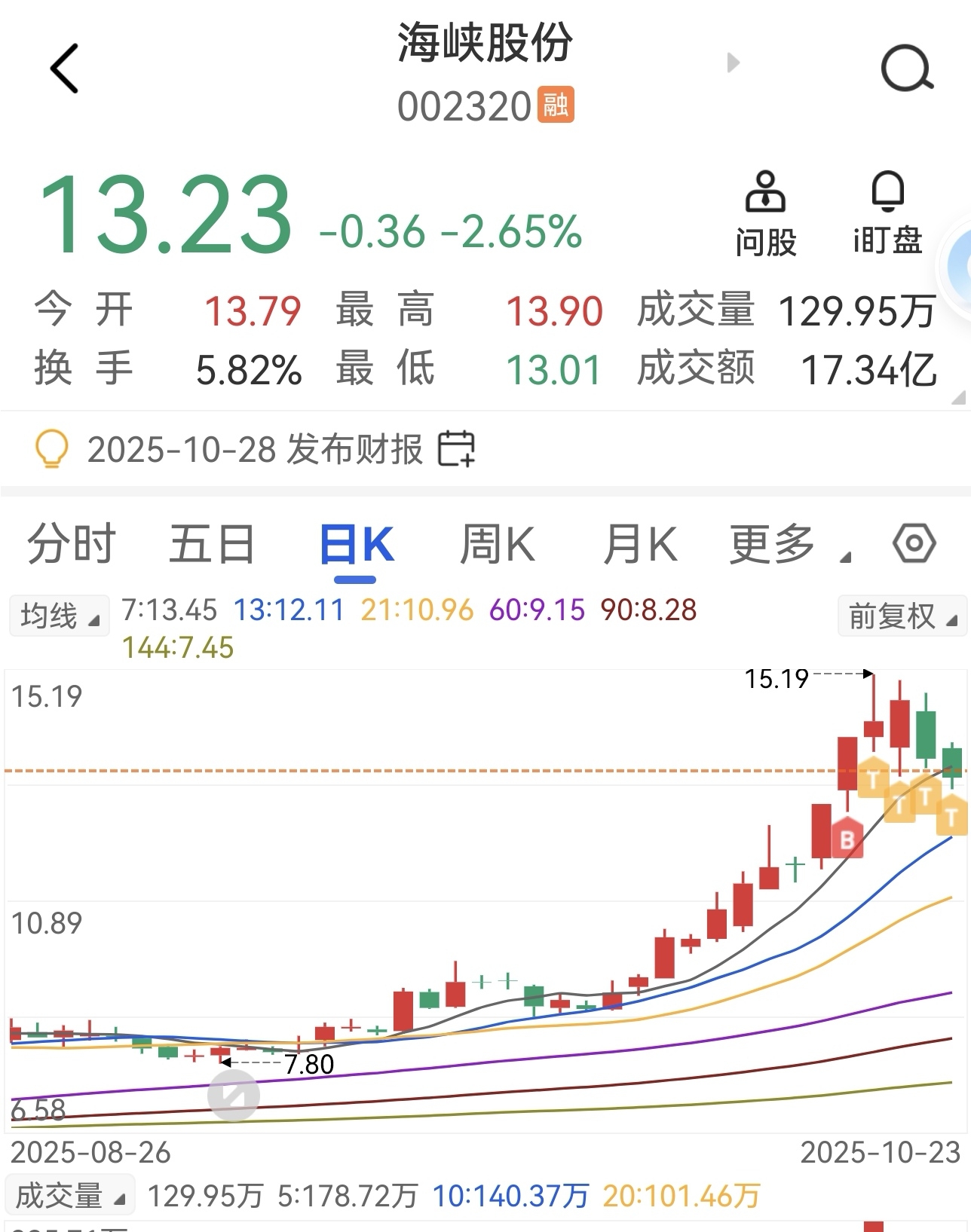 $海峡股份(SZ002320)$ 任凭空狗狂吠,我自按纪律做T。目前已经加到八成仓位,现价已到我的成本线,但只要T做得好,现价就追不上我的成本。明天看有没有高抛低吸的机会,继续把成本做低下来,等待风起!