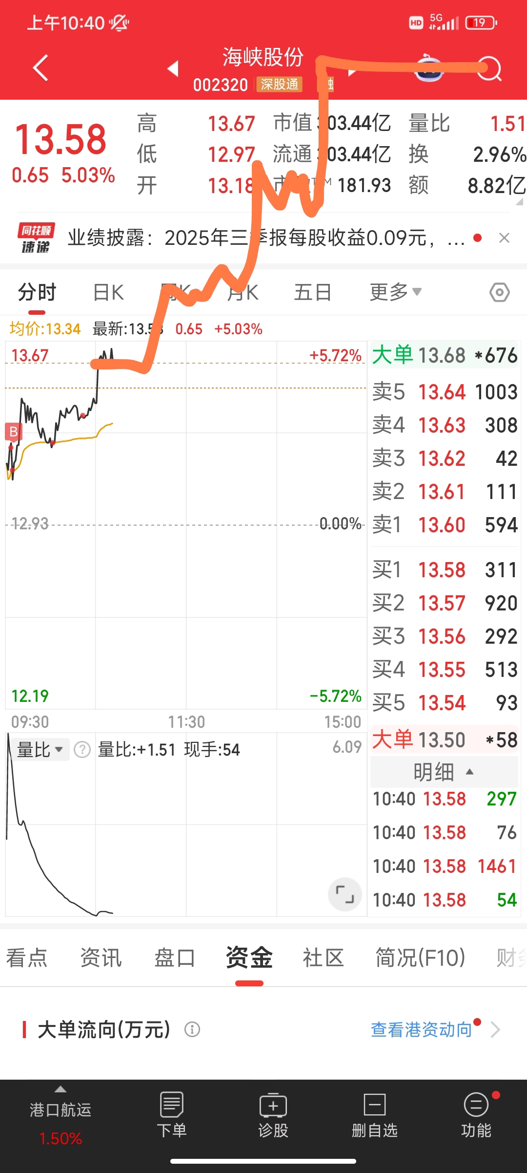 $海峡股份(SZ002320)$ 我预测下今天走势。。震荡往上。。洗掉不坚定的