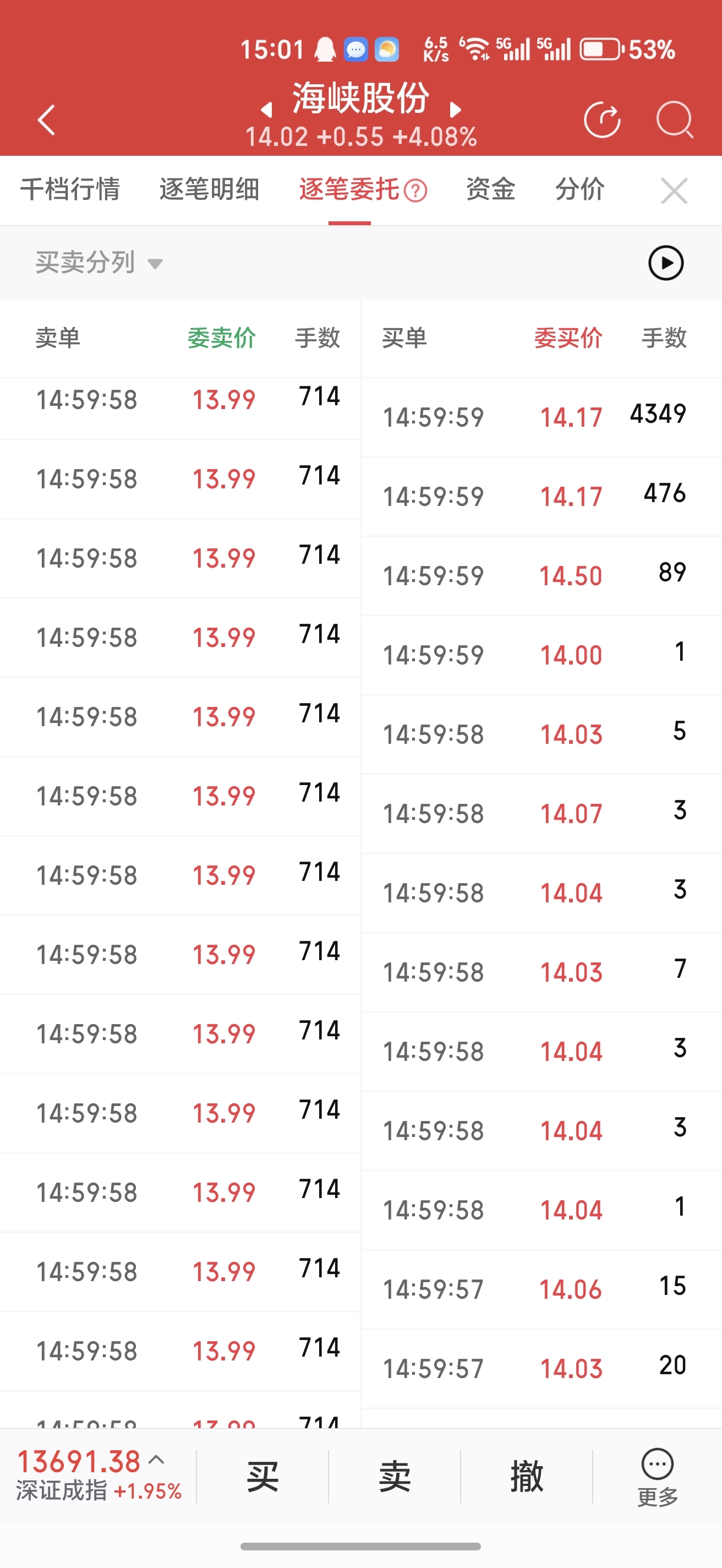 $海峡股份(SZ002320)$ 集合竞价有人挂了十几个714手的卖单